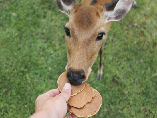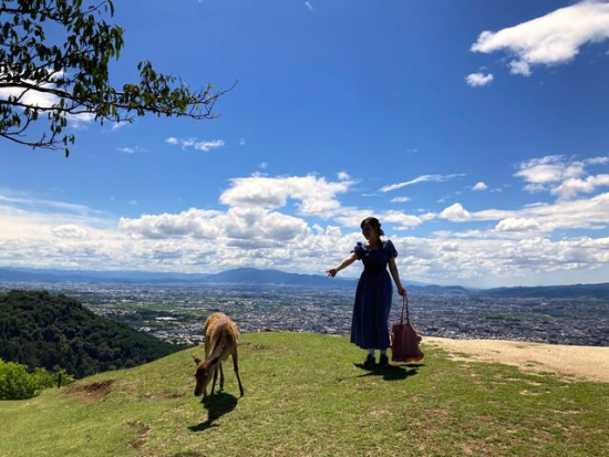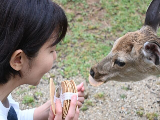 ■若草山山頂では、奈良市街を一望いただくとともに、鹿せんべいを1人1セット配付して、鹿と触れ合っていただけます。