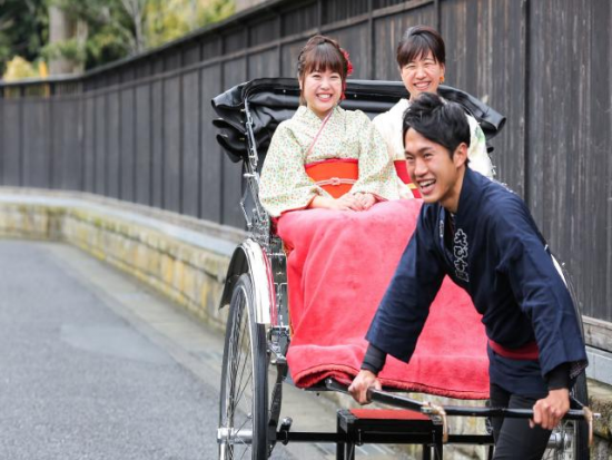 | 参加条件/注意事項 | ※3名以上の算出方法:(2名様料金×2名乗車の台数)+(1名様料金×1名乗車の台数) 3名様の場合は・・2名様セット+1名様でお申込みください。(人力車2台、28,000円となります。) 4名様の場合は・・2名様セット×2でお申込みください。(人力車2台) ■時間厳守のご協力のお願い お客様のご予約のため、前もって人力車を確保して準備に入ります。予定時刻に遅れる場合は必ず事前にお知らせください。 ■遅刻について 事前にご連絡が無く、私どもからの連絡もつかないまま10分が過ぎた場合はキャンセル扱いとします。それ以降にお越しになられてもすぐに配車できない場合や時間を短縮してご案内させていただくことがございます。どうぞお時間に余裕をもってご予約いただきますようお願いします。 ■妊娠中のご乗車について 妊娠16週までのお客様はご乗車をお控えください。妊娠17週以降で安定期に入られている方はご乗車いただけます。 ■人力車の座席の幅について 人力車の座席幅は74cmです。お客様が座席に収まらない等の理由で安全が確保できないとき、複数台に分かれてご乗車いただく場合がございます。その際は、必要な差額を現地でお支払いいただくようお願いします。 ■首がすわられていないお客様のご乗車もお控えいただいております。 ■俥夫の指名希望(英語での対応など)の際は、お申し込みの際にお知らせください。指名料として、1,000円(税込)を申し受けます ★【営業時間】 おおむね9:30~日没まで営業しておりますが、繁忙期やライトアップ時は営業時間を延長しております。 ★雨や雪の日について 雨や雪の日でもご乗車いただけます。座席の左右の幌と雨用のひざ掛けをご用意しておりますので、乗車中にお客様が濡れてしまう事はございません。風の影響により、霧のような雨や雪が座席に舞い込んでしまう場合はございます。 ※ご予約を賜りましても渋滞状況によりお待ちいただく場合もございます。予めご了承下さい。 |