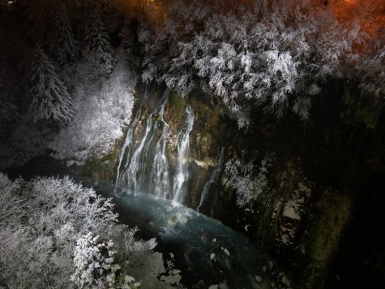 雪化粧をまとった「ケンとメリーの木」や「青い池」、幻想的にライトアップされた「白ひげの滝」など、冬ならではの絶景をゆったりと楽しめます。