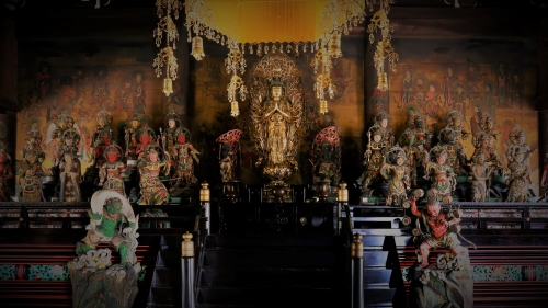 千手観音菩薩、二十八部衆、風神・雷神像に加え、木村徳応筆の極彩色壁画など、圧巻の仏教絵巻が広がります。