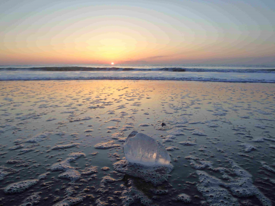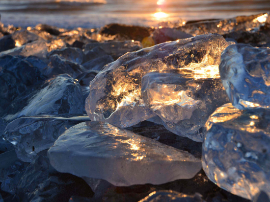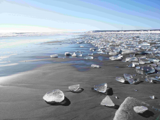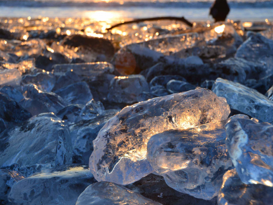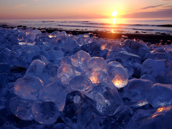 十勝川の氷が太平洋へ流れ出し、大津海岸に打ち上げられることで生まれる氷の芸術。