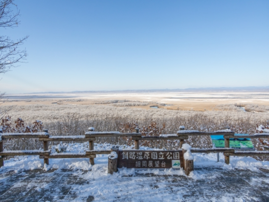 蛇行する釧路川と大湿原を見渡す圧巻のパノラマビューは必見。