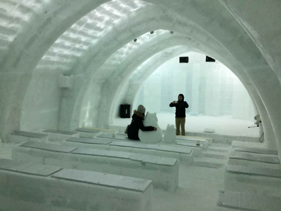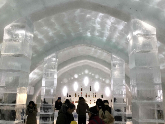 【自由散策】現地では1時間のフリータイム、アイスバーや氷上温泉などを存分に満喫