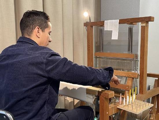 各産地や糸の種類などの違いにより様々な特徴を持った白生地を実際に手に触れ、その風合い、美しい光沢をご覧いただけます。