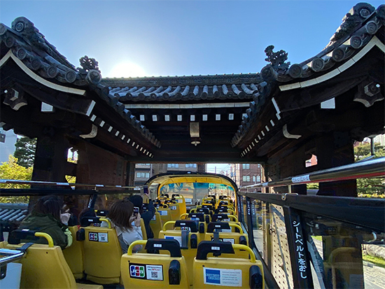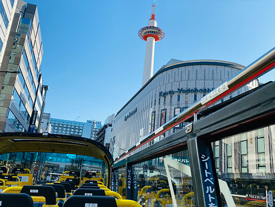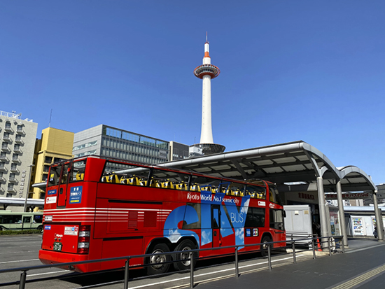 | 1日のスケジュール | 【所要時間 約1時間15分】 <<案内順不同>> ★乗ったままぐるっと車窓観光★ JR京都駅烏丸口(出発時刻) ↓ ・西本願寺 ・二条城 ・京都御所 ・護王神社 ・加茂街道(桜並木) ・賀茂大橋 ・糺の森 ・琵琶湖疏水(桜並木) ・平安神宮 大鳥居 ・八坂神社 ・京都南座 ・ニデック京都タワー など ※「祇園」バス停で下車できます ↓ JR京都駅烏丸口 |