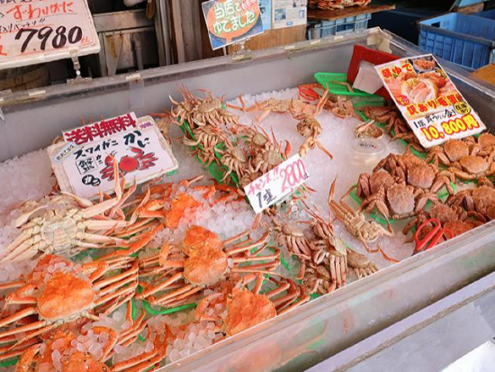 | ▼ 12:10~13:20 | ※③札幌市中央卸売市場場外市場(自由昼食・自由見学)【70分】 北海道各地から集まった魚介類や野菜、果物など様々な食材が並びます。そんな新鮮な魚介を使った海鮮丼や定食が食べられる食堂がいくつもあり、お昼はこちらで自由食となります。 |