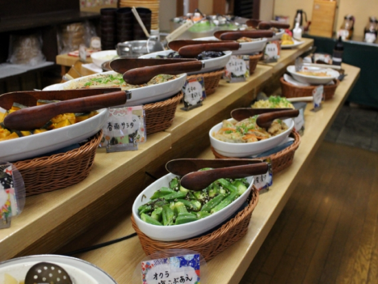 昼食は四季彩館 八幡家にて「野菜たっぷりランチビュッフェ」をお楽しみください。