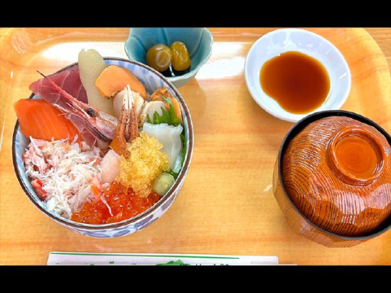| 昼食 | 【海鮮味処 新生:海鮮丼(月~金曜)】 海鮮丼(積丹産マグロ、エビ、イカ、サーモン、カニ、トビッコ、カレイ、イクラ、ホッキ貝)・味噌汁・小鉢 ※ご飯は酢飯ではございません。 【岬の湯しゃこたん:海鮮丼(土・日曜)】 海鮮丼(かに爪・かにのほぐし身・マグロ・とびっ子・数の子・イカ・えび・いくら・サーモン・ホタテ)・味噌汁・小鉢 ※ご飯は酢飯ではございません。 ※写真はイメージです。仕入れの状況により、内容が変更となる場合がございます。 |